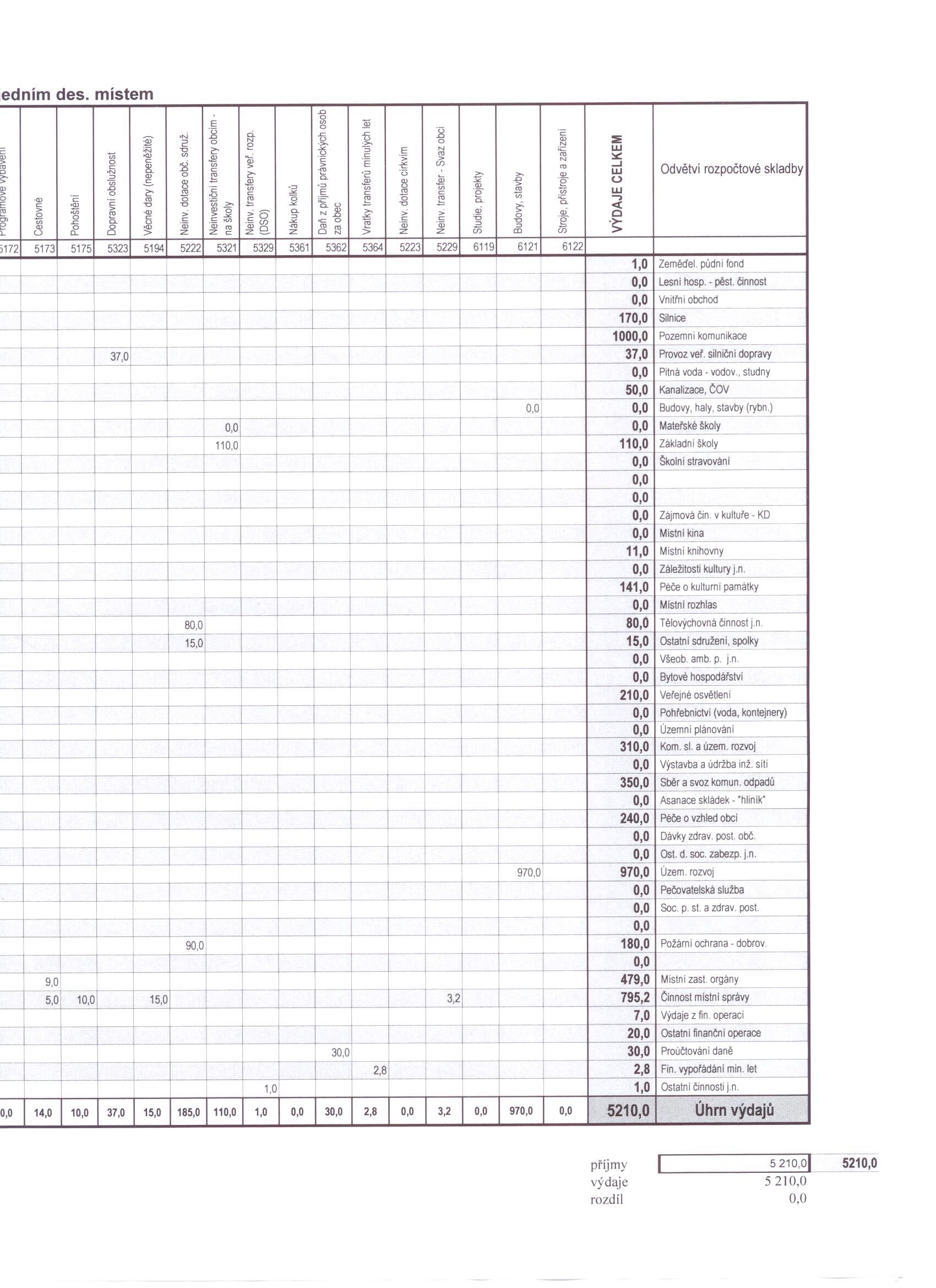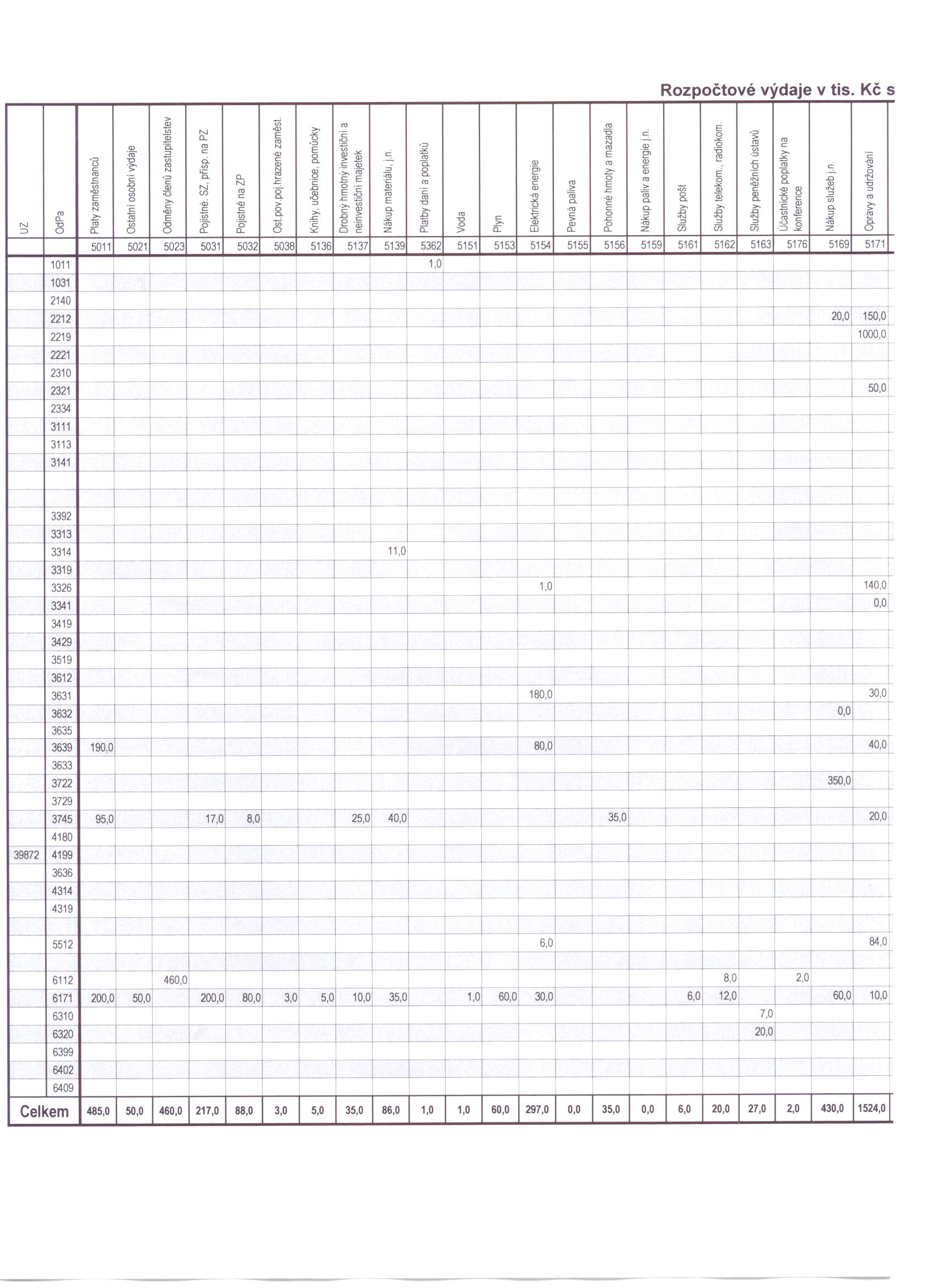 Rozpočtové výdaje v tis. Kč s jedním des. místem